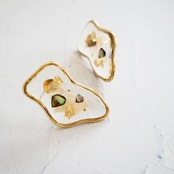 変形したリングの中にシェルと金箔があしらわれていて、目を引く大人っぽさのあるアクセサリー。