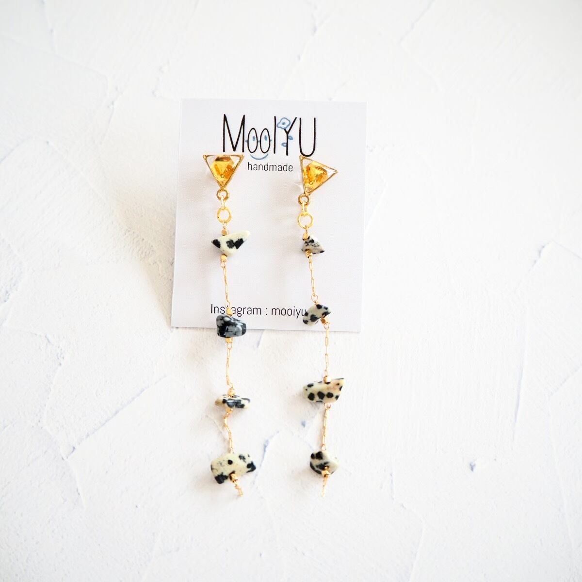 No.2-13 MOOIYU スクエアレジンとさざれ石のロングピアス