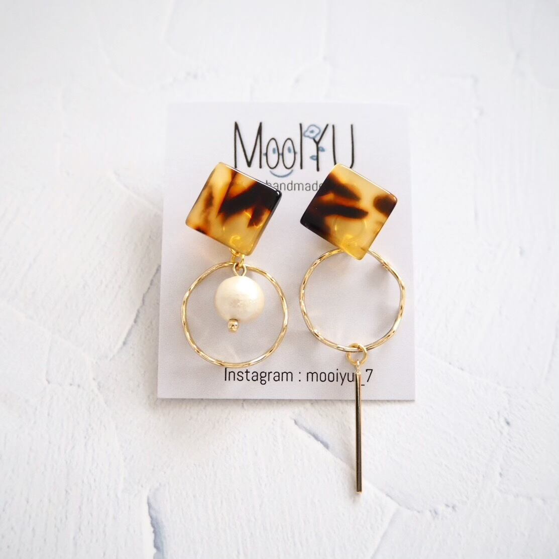 再入荷 No.2-1 MOOIYU べっ甲と揺れるパールピアス