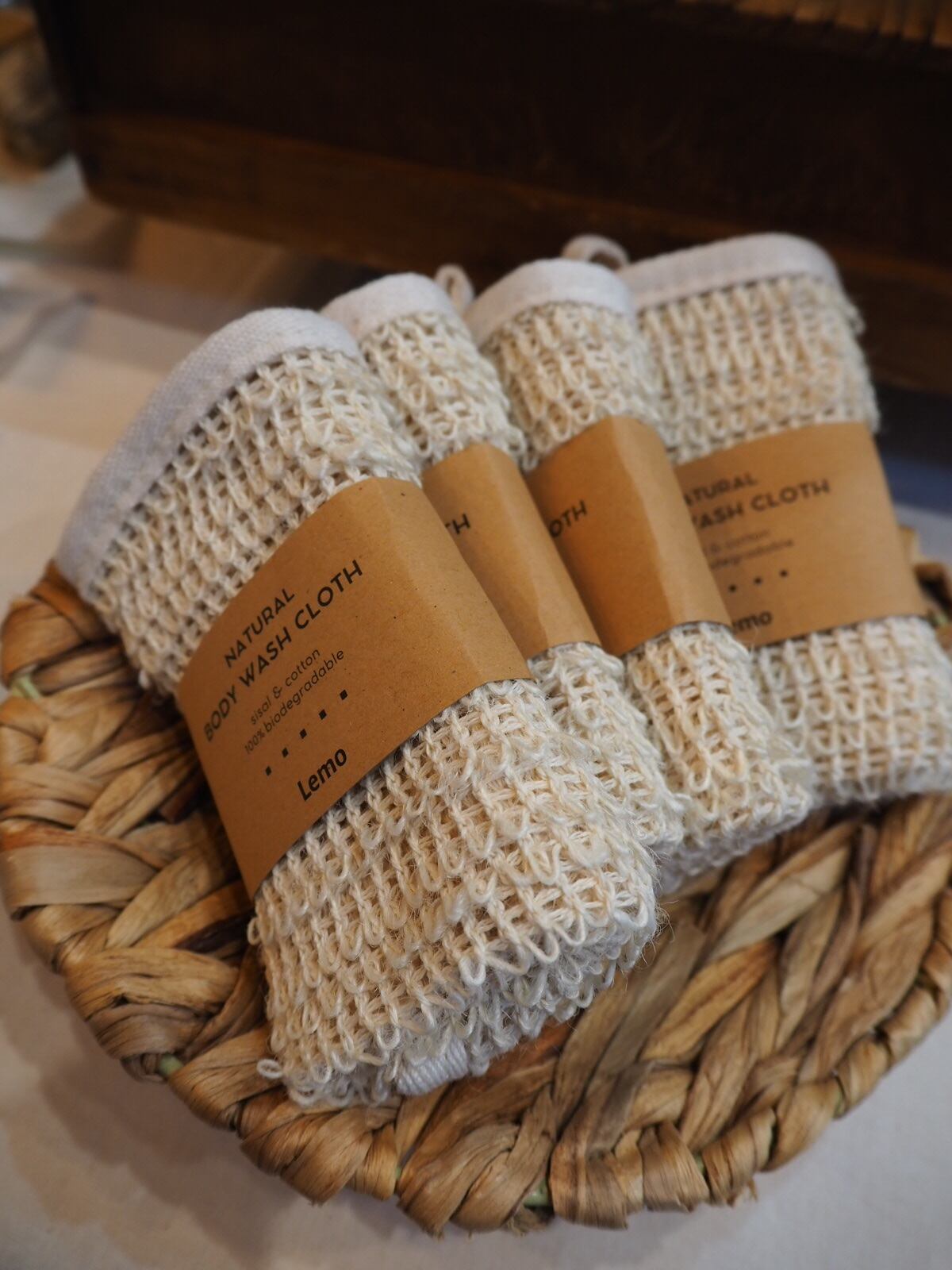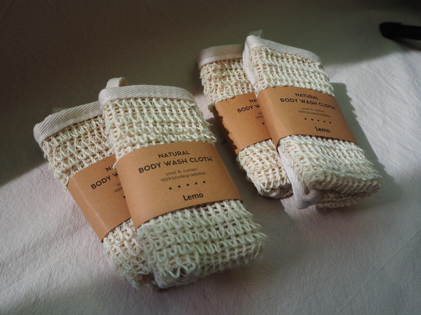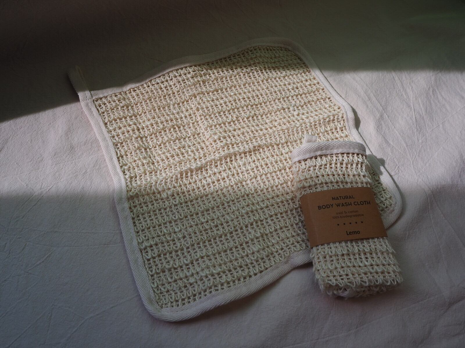 サイザル(麻)とコットンでできた体洗いタオルです。